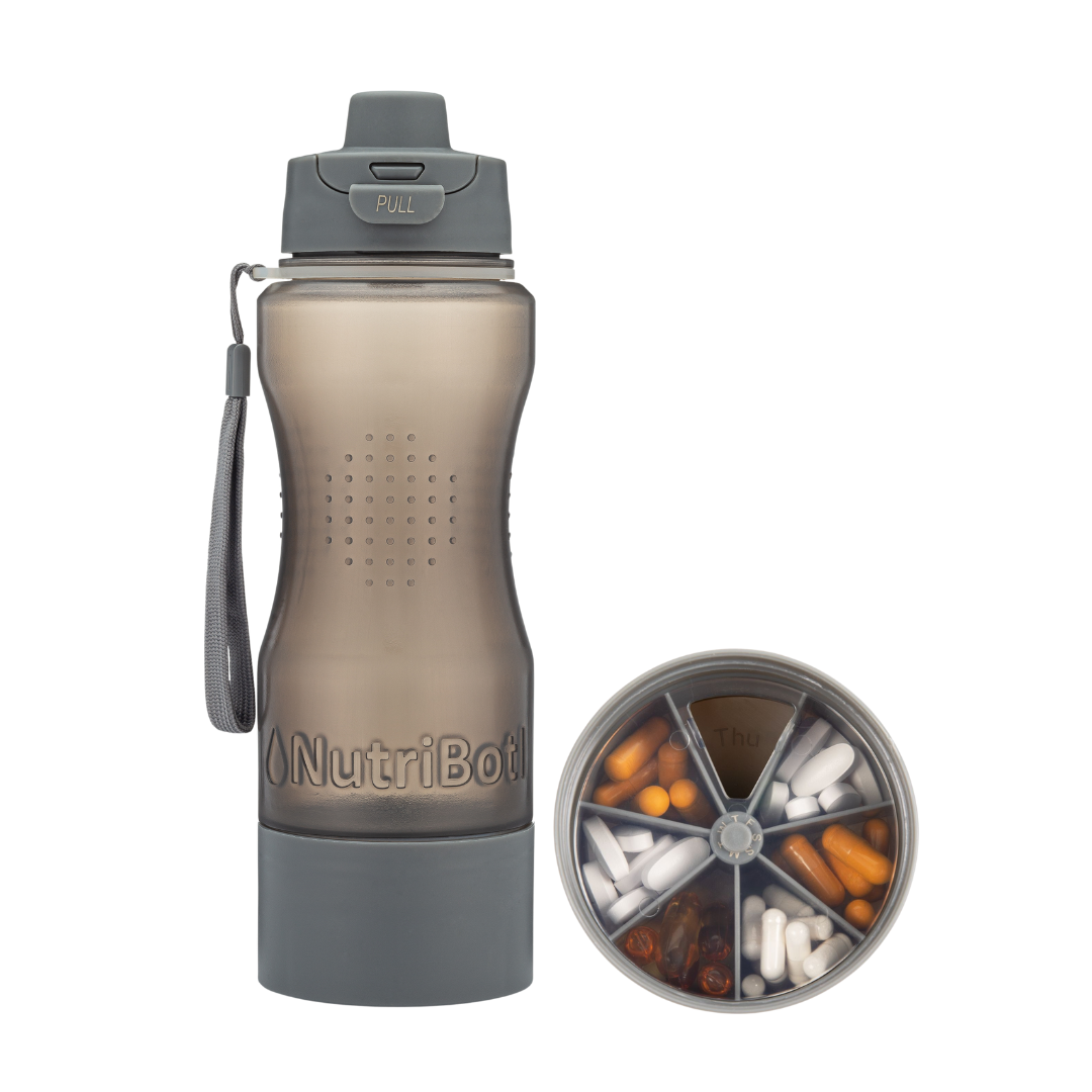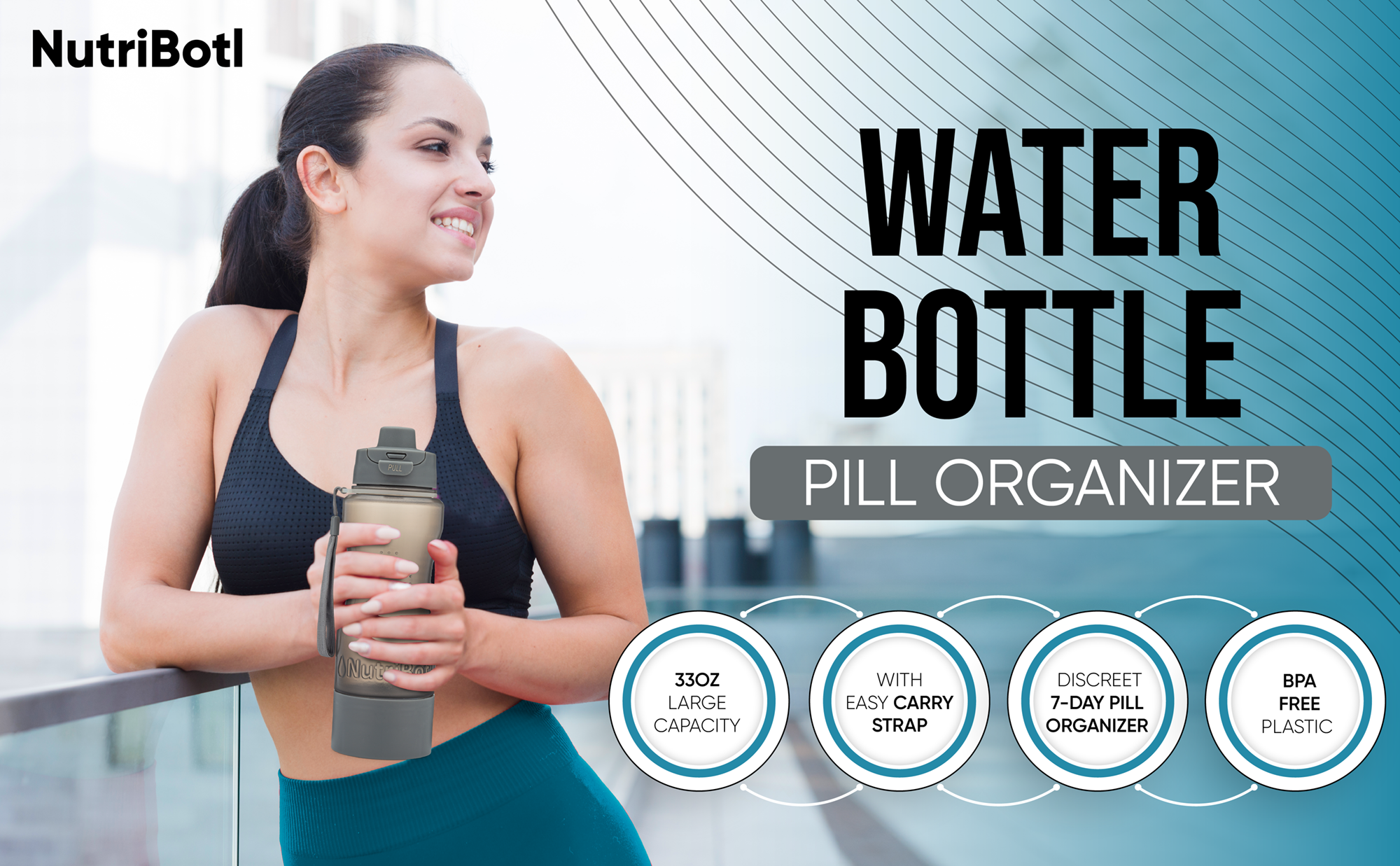Stay organized and hydrated with NutriBotl - the innovative 7-day pill organizer and 33-ounce BPA-free water bottle combo! NutriBotl is the perfect solution for anyone looking for a practical way to maintain their health regimen on-the-go.